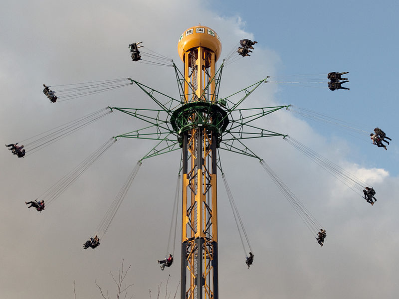 鉄骨番長は、高さ59mのタワーの周りを、最高時速51kmで回転する空中ブランコで、ブランコが上昇と下降を繰り返しながら回転する。最高到達点は47mにも達する。