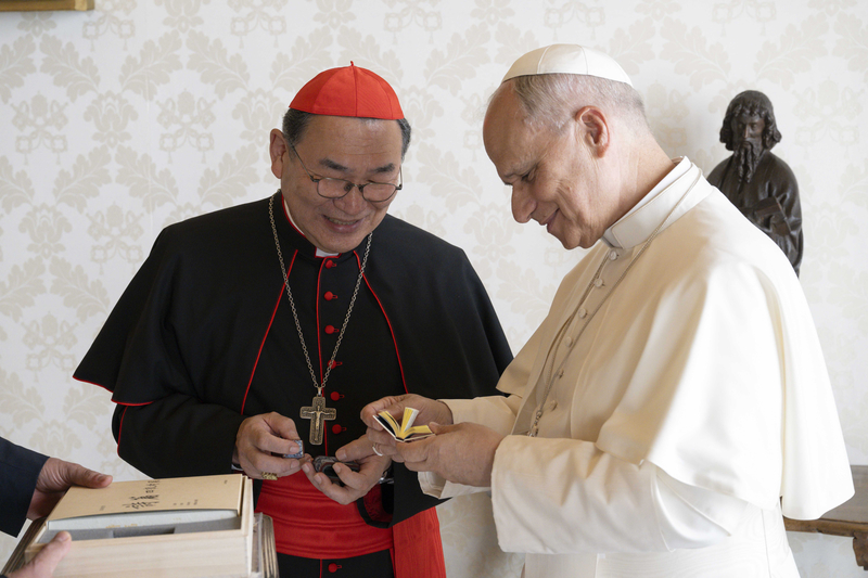 日本聖書協会は、2017年には新共同訳を、昨年には聖書協会共同訳の特装版講壇用聖書を、それぞれ前教皇の故フランシスコに献呈している。現教皇のレオ14世に同協会発行の聖書を献呈するのは初めてで、「150年にわたる聖書普及の歩みを覚えつつ、この出来事を日本と世界における聖書普及の新たな一歩としてまいります」としている。