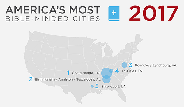米国の「聖書に熱心な都市」と「聖書に熱心ではない都市」トップ10発表